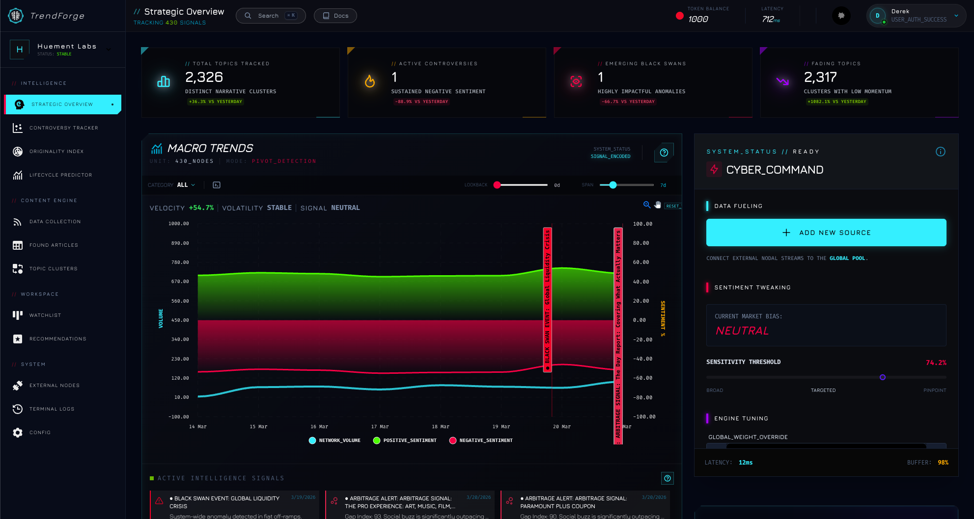 This is a small preview of the upcoming Trend Forge project. checkout trendforge.huement.com for a full preview, as well as being able to sign up to start reciving your own narrative arbitrage signals.