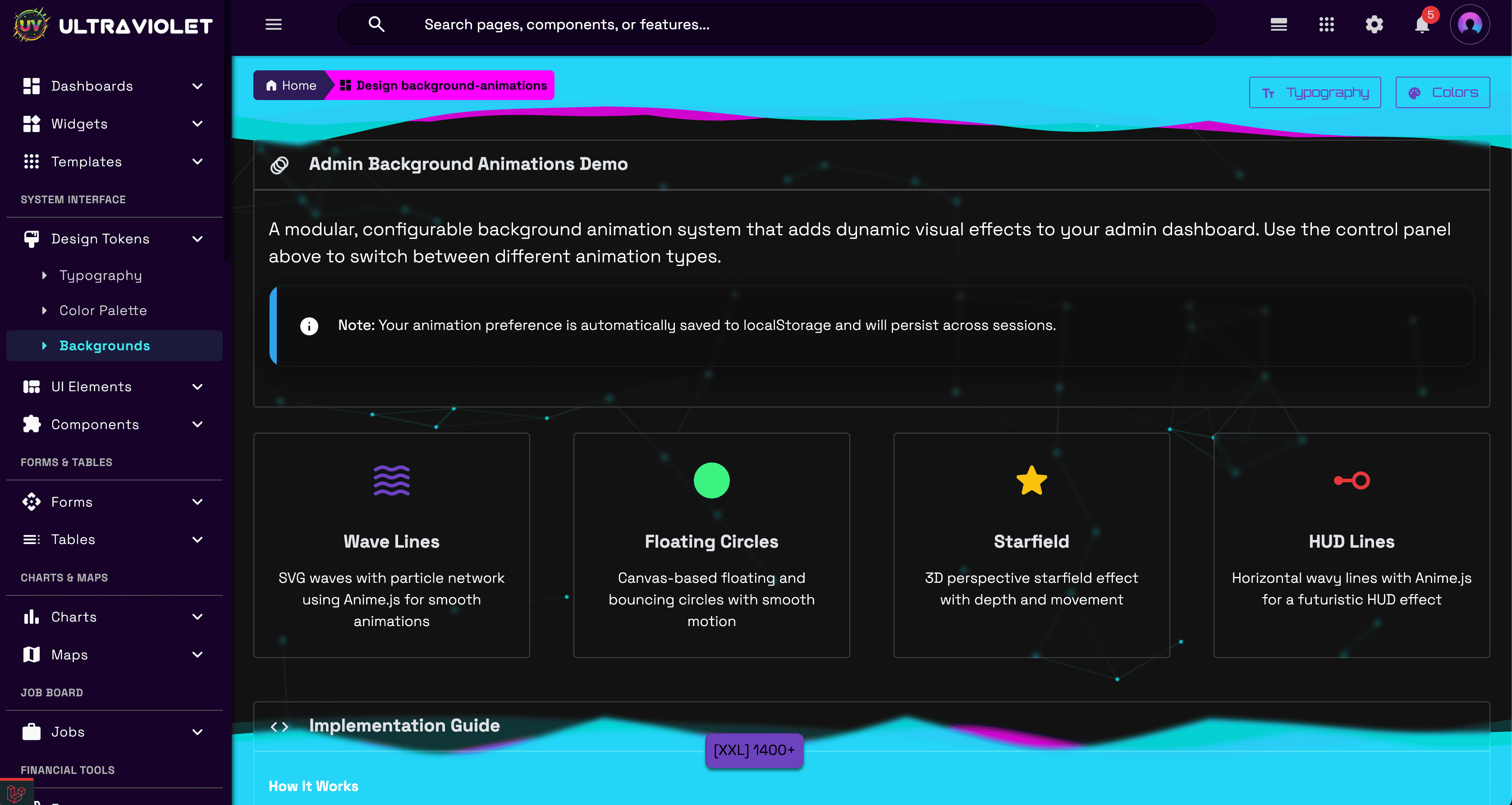 Interact with the modular component library—from cards and forms to modals and tables—built on modern Bootstrap 5 foundations and polished with UltraViolet gradients.